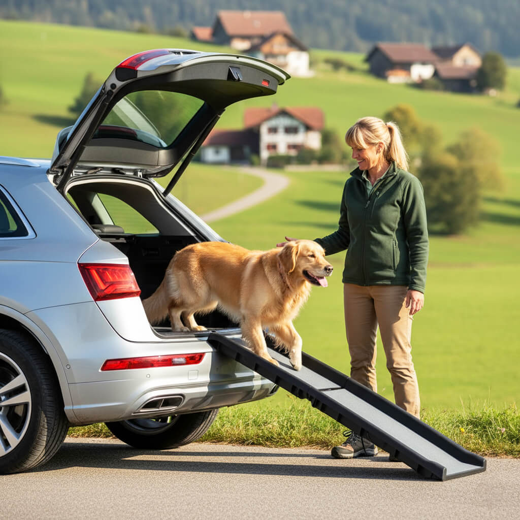Egal ob Welpe, Senior oder sportlicher Hund: Der Einstieg über eine Rampe ist die gesündeste Art zu reisen. Unsere Auto-Rampen überbrücken die Höhe zur Ladekante mit einem angenehmen Winkel. Das verhindert das schädliche Stauchen der Vorderläufe beim Herausspringen und die Überlastung der Hinterhand beim Hineinspringen. Für Hunde mit HD (Hüftdysplasie) oder nach Operationen ist eine solche Einstiegshilfe oft unverzichtbar, um mobil zu bleiben.