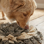 Stilvoller Schnüffelteppich in Grau/Weiß für artgerechte Kopfarbeit bei Hund und Katze. Perfekt als Slow Feeder gegen Schlingen oder zur entspannten Auslastung für zwischendurch.