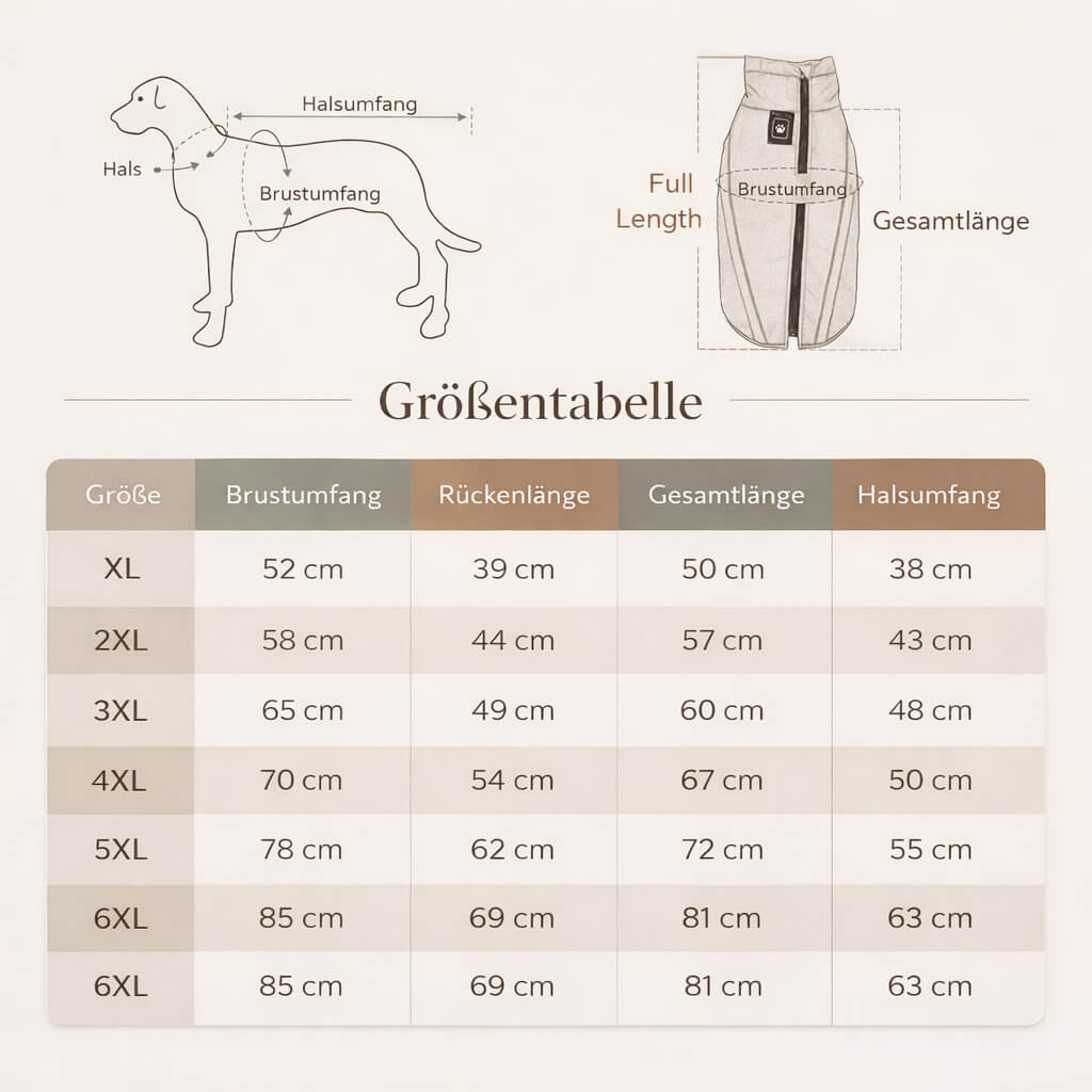 Hält deinen Hund in der kalten Jahreszeit warm, trocken & sichtbar – mit wasserfestem Material und reflektierenden Details.