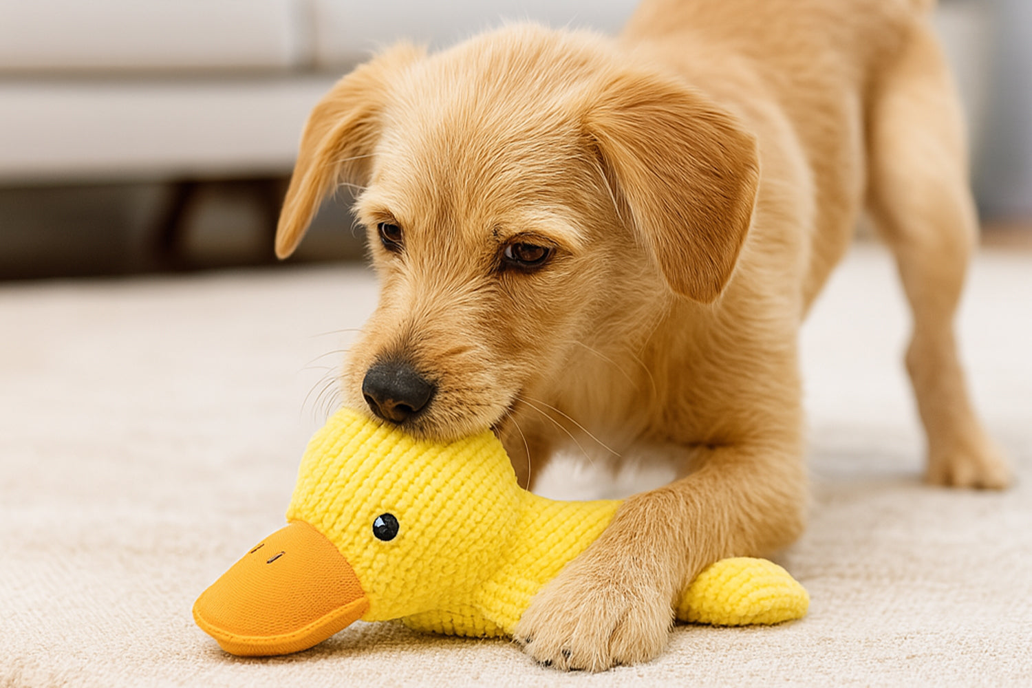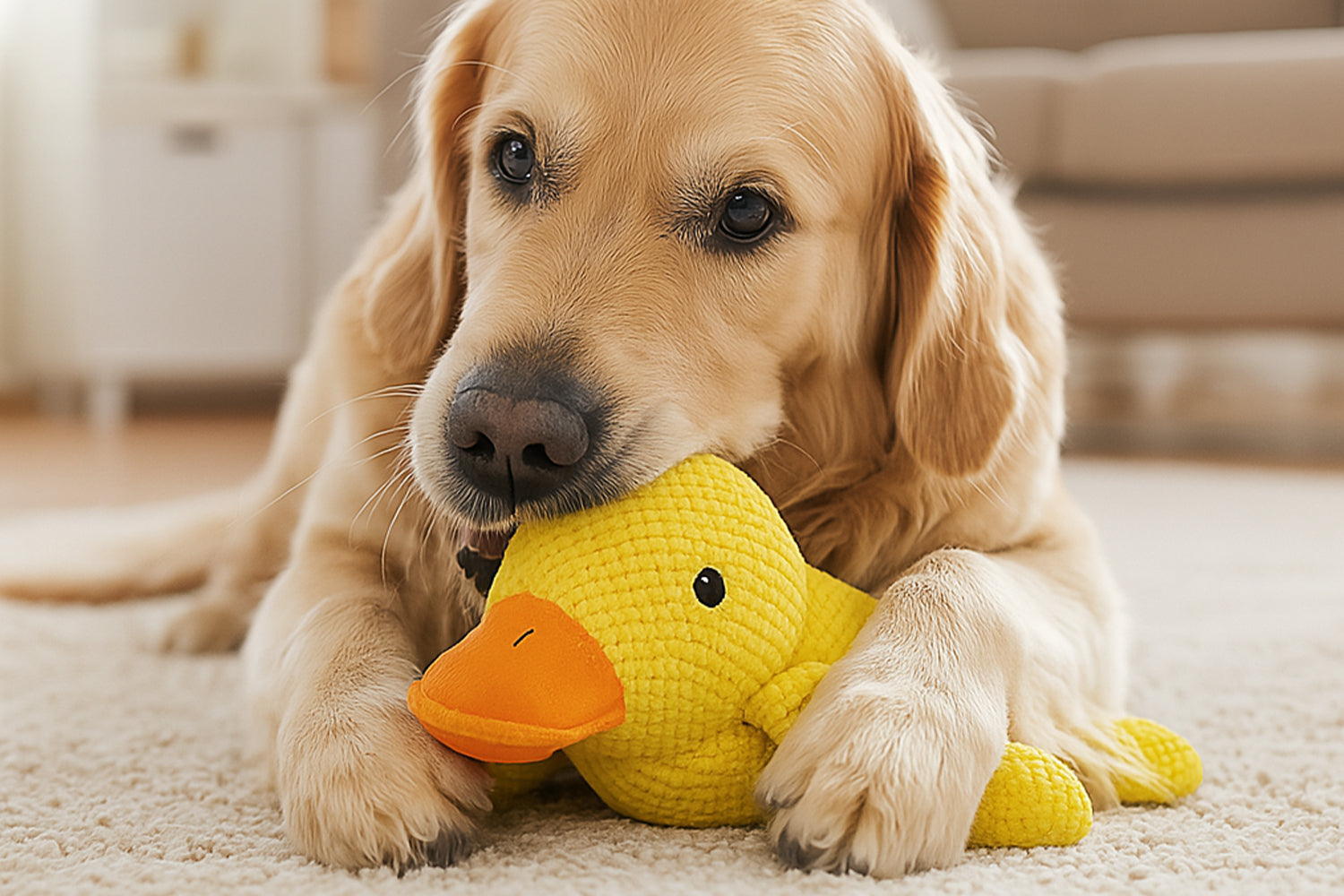 Ob beim Alleinbleiben oder an einem ruhigen Nachmittag – die Ente sorgt für sinnvolle Beschäftigung. Das Kauen wirkt beruhigend auf viele Hunde, denn es setzt Glückshormone wie Endorphine frei. Dieses natürliche Verhalten hilft, Nervosität abzubauen, innere Unruhe zu mindern und Frust zu lösen. Gleichzeitig werden überschüssige Energien kontrolliert abgebaut – dein Hund bleibt entspannt, zufrieden und mental ausgelastet.