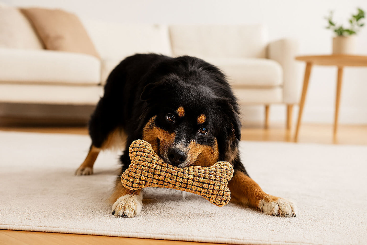 Langeweile war gestern! Dieses Spielzeug beschäftigt Deinen Hund körperlich und geistig – ideal auch für alleinige Zeiten. Der integrierte Quietscher sorgt für extra Motivation, während das Kauen Stress abbaut und für innere Ruhe sorgt. So bleibt Dein Hund ausgelastet, zufrieden und fröhlich.